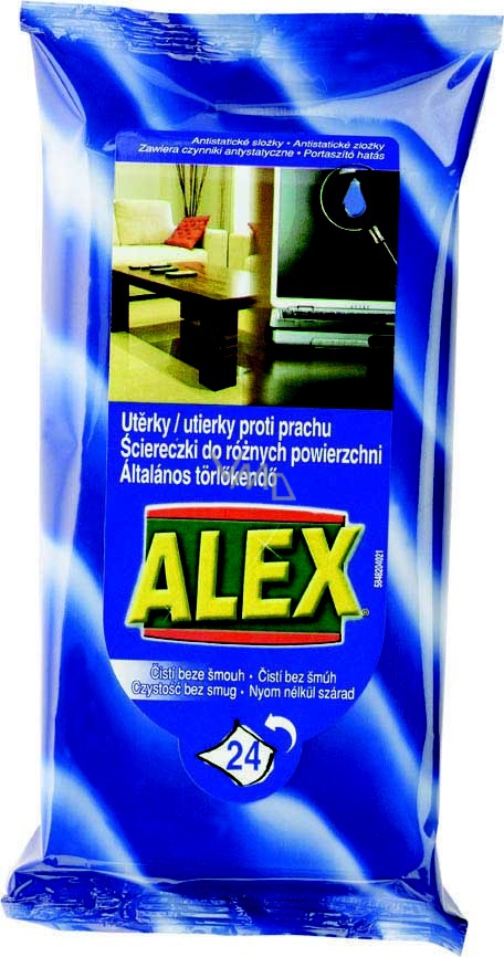 Jednorázové utěrky Alex proti prachu účinně odstraňují prach a nečistoty. Díky antistatickým složkám oddalují opětovné usazování prachu. Nezanechávají šmouhy.