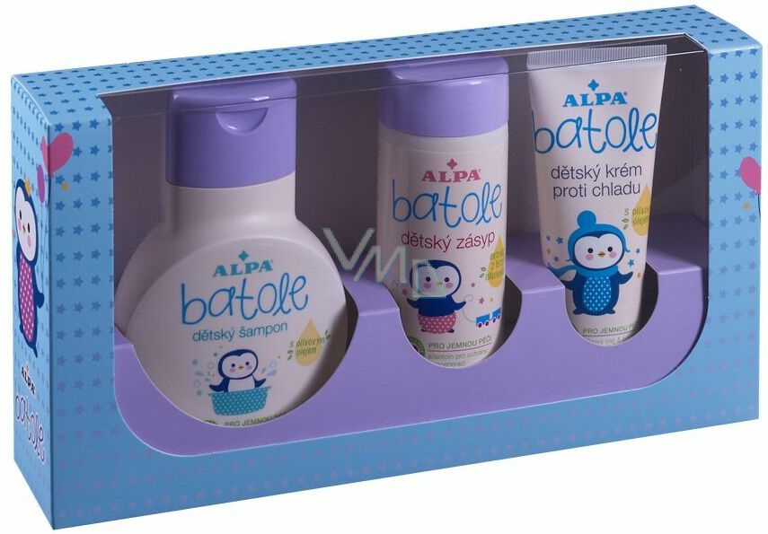 Alpa Batole šampon s olivovým olejem pro děti 200 ml + zásyp s extraktem z listu olivovníku 100 g + krém proti chladu 75 ml, kosmetická sada