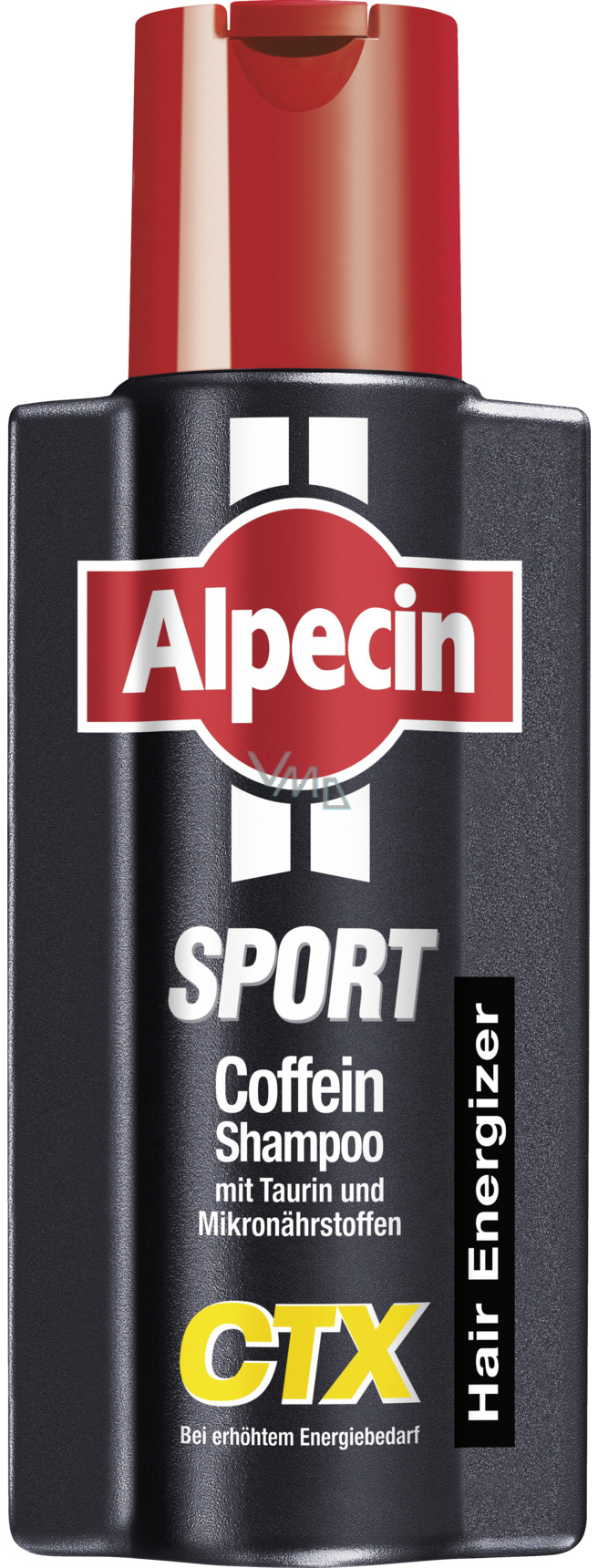 Alpecin Sport Kofeinový šampon CTX - trénink pro vaše vlasy. Vlasový šampon je vhodný pro muže, u kterých hrozí vypadávání vlasů a nedostatek energie pro růst vlasů z důvodu tělesné námahy. Energetická vzpruha pro vlasy díky kofeinu, taurinu a mikroživinám. Pro posílení růstu vlasů, pro husté a silné vlasy. Množství absorbovaného kofeinu závisí na délce působení. Kofeinový komplex Alpecinu je ve vlasovém kořínku velmi dobře prokazatelný již za 2 minuty.