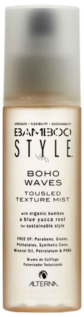 Tato jemná tvarující mlha vytváří dokonale přirozený rozcuch, jako byste se právě vrátila z pláže. Dodává texturu, objem a zdravý vzhled. Je vhodná pro všechny typy vlasů. Obsahuje výtažky z BIO bambusu a kořenů modré juky. Bez parabenů, glutenů, ftalátů, syntetických barviv,