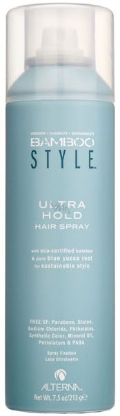 Lak na vlasy Alterna Bamboo Style Ultra Hold Hair Spray dodá vlasům silnou fixaci. Dokonale zpevní účes a zajišťuje bezchybný vzhled během celého dne. Obsahuje výtažky z Bio bambusu a kořene modré juky, které pomáhají vlasy vyživovat a chránit.