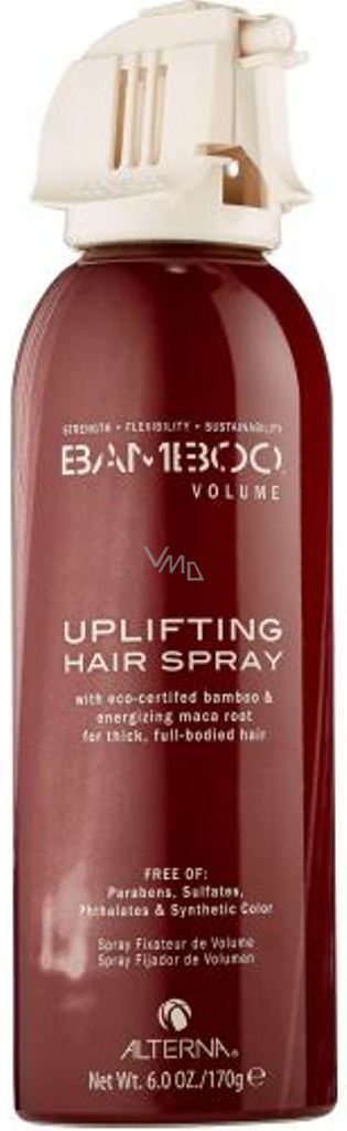 Unikátní stylingový sprej Alterna Bamboo Volume Uplifting Hair Spray obsahuje velmi účinné výtažky bez genetické modifikace z bambusu a kořene maca. Ty zanechávají vlasy viditelně zdravější, silnější a pružnější a poskytují vlasovým vláknům hydrataci a výživu do hloubky vlasových vláken. Po aplikaci spreje je účes krásně provzdušněný, objemný a vypadající přirozeně.