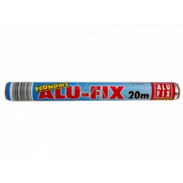 Snad v žádné domácnosti nesmí chybět alobal. Mějte i vy po ruce tuto praktickou hliníkovou fólii. Alobal Alufix je ideální pro balení potravin, díky čemuž si jídlo zachová svoji kvalitu, výživovou hodnotu a nedojde k jeho vysušení. Alobal je lehce poddajný a snadno se tvaruje kolem předmětů. Fólie o 20 metrech vám bude vždy po ruce a nezklame vás. Délka role 30 metrů a šířka 29 cm. Materiál hliník o síle 9 µ (mikro).