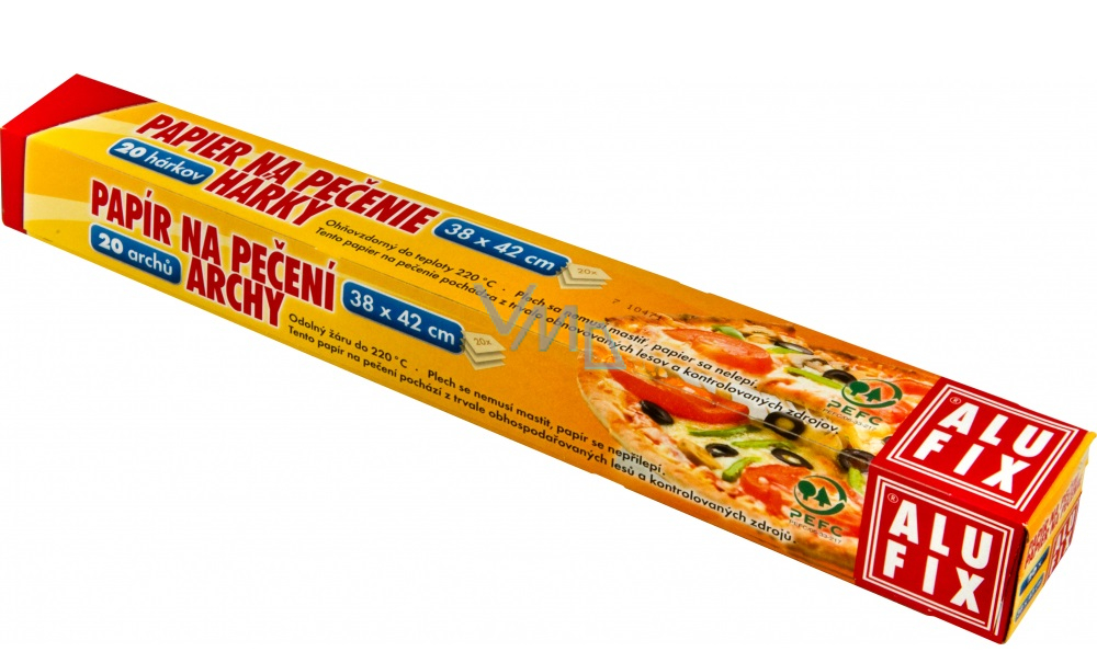 Papier do pieczenia jest odpowiedni do zdrowego pieczenia potraw bez użycia tłuszczu, blacha z użyciem papieru do pieczenia nie wymaga smarowania. Wygodne użycie pojedynczych arkuszy, które mają rozmiar odpowiadający standardowej blasze, ułatwia manipulację z papierem, który nie musi być przycinany na wymiar. Papier do pieczenia jest dwustronnie użyteczny i nieprzywierający, potrawy się do niego nie przyklejają. Odpowiedni do wszystkich typów piekarników oraz mikrofalówek. Odporny do 220 °C.