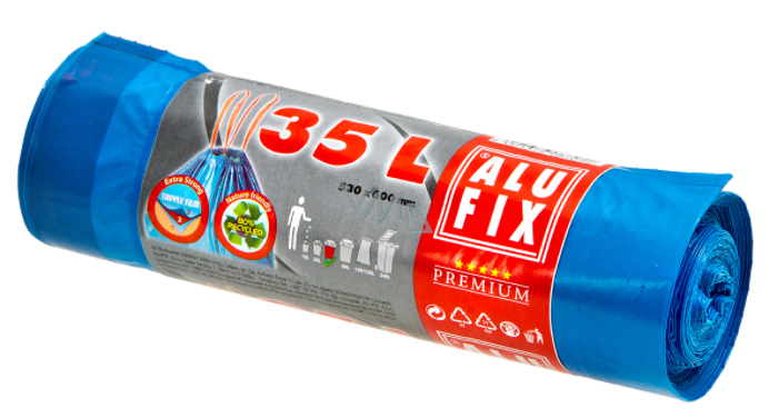 Pytle na odpad Alufix zatahovací jsou pevné, nepropouští vlhkost a zachovávají tak váš domácí nebo kancelářský odpadkový koš v čistotě. Jsou vyrobeny z vysokohustotního polypropylenu, díky kterému nepropouští vlhkost. Tloušťka igelitu 20 mikronů zajistí, že odpadky zůstanou vevnitř pytle a nedojde k jeho nechtěnému protrhnutí. Velmi pevné pytle na odpad se zatahovací páskou, která usnadní následnou manipulaci a zajistí hygienické nakládaní s odpadem. Tyto pytle se brzy stanou nezbytností pro váš každodenní úklid.