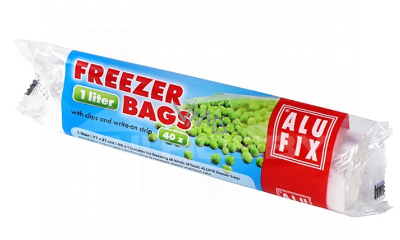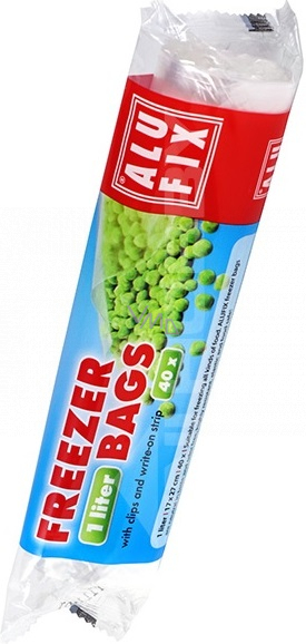 Alufix Sáčky do mrazničky, s uzavírajícími svorkami a místem pro popisy 1 litr, 40 kusů