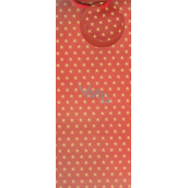 Alvarak Dárková papírová taška na láhev 36 x 13 x 9 cm červená hvězdičky 1 kus 211113