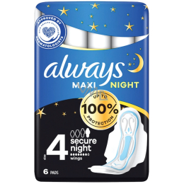 Always Maxi Secure Night oferują doskonałą ochronę i komfort w chwili, gdy potrzebujesz tego najbardziej. Silne wkładki higieniczne oferują aż 100% ochrony dzięki barierom przeciw przeciekaniu wokół całej wkładki oraz dzięki dodatkowej chłonnej rdzeni. Dodatkowo mają komfortową powierzchnię. Zafunduj sobie spokojny sen nawet w ciągu dnia z wkładkami marki Always.