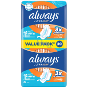 Wkładki higieniczne Always Ultra Day, rozmiar 1 Normal, zostały zaprojektowane do codziennego użytku podczas menstruacji, z naciskiem na maksymalną ochronę i komfort. Dzięki potrójnej ochronie i technologiom, które zapobiegają przeciekaniu i neutralizują zapach, będziesz czuć się pewnie i wygodnie przez cały dzień.