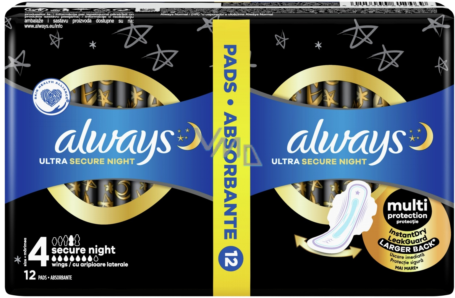 Always Ultra Secure Night Protection podpaski higieniczne z skrzydełkami 12 sztuk