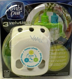 Máme pro vás svěží nápad – elektrický osvěžovač vzduchu, který automaticky střídá tři vzájemně se doplňující vůně. AmbiPur znatelně provoní vaši domácnost až na 90 dní. AmbiPur 3volution přináší pohodlný a inovativní způsob, jak trvale odstranit nepříjemný odér, ať už jde o zatuchlinu nebo zápach domácích mazlíčku. Váš dům provoní vlna teplé, jemné vůně. Oleje, jejichž vůně se spolu báječně snoubí, budou laskat váš nos a obklopí vás po celý měsíc dlouhotrvající svěžestí.