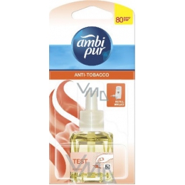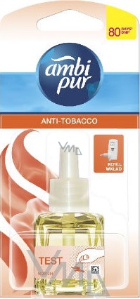 Ambi pur Anti Tabák neutralizuje pachy tabákového kouře. Delikátní vůně cedrového dřeva a máty, neutralizuje zápach tabákového kouře a zanechává příjemnou a svěží atmosféru. Obsahuje 1 náplň s parfémem. Vydrží 80 dnů při používání 12 hodin denně na stupni 2.
