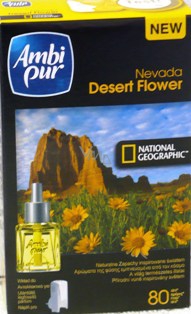 Objevte vůni Nevada Desert Flower, když zimní déšť nabere sílu v Nevadské poušti, rozkvetou pouštní květy. Je to nádherný pohled vidět žluto oranžový koberec drobných květů, a pouští se rozplyne smyslná a intenzívní vůně. Ambi Pur a National Geographic přinášejí tuto vůni přímo do Vašeho domova. Delikátní sladká vůně čerstvého koření namíchaného s meruňkou a zelenými bylinkami, bude Vám i Vašim hostům poskytovat pocit pohody ve Vašem domově.