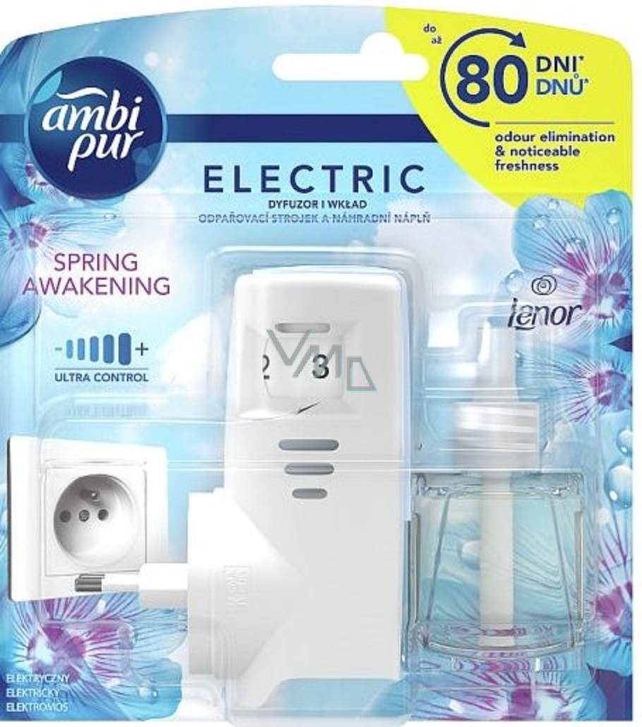 Startovací sada elektrického osvěžovače vzduchu Ambi Pur s technologií OdourClear nepřetržitě odstraňuje nepříjemné vytrvalé pachy a zanechává lehkou svěží vůni až 80 dnů (pokud se používá 12 hodin denně při nastavení na úroveň 2). Wiosenne Przebudzenie je lehká vůně zeleně inspirovaná jarní přirozenou svěžestí Lenoru. Vytvořte si prostředí podle svých představ s elektrickým osvěžovačem vzduchu Ambi Pur a širokou škálou kvalitních vůní, které skutečně eliminují zápach, abyste si mohli vy i vaši hosté užívat příjemnou svěžest.