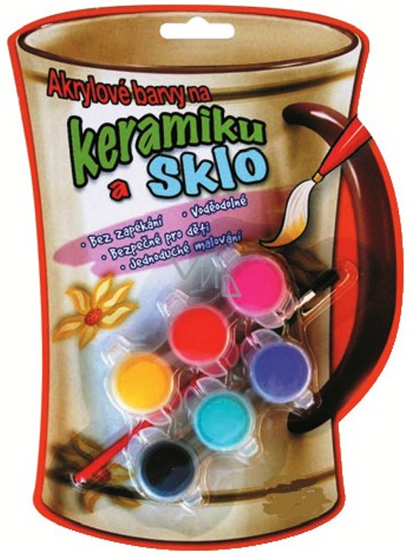 Bez zapékání, voděodolné. Jednoduché malování. Vodou ředitelné a možnost vzájemně barvy míchat k docílení širší barevné palety.