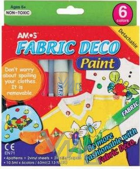 Amos Fabric Deco Barva na textil, nažehlovací šablony, folie 6 kusů 10,5 ml