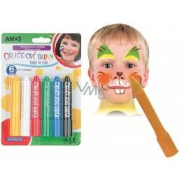 Barvy na obličej a tělo 6 ks po 2,5 g perleťové, smývatelné vodou a mýdlem.