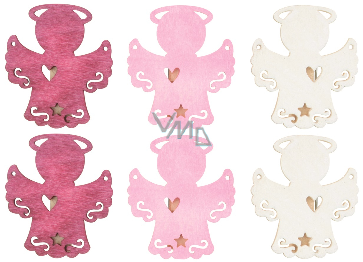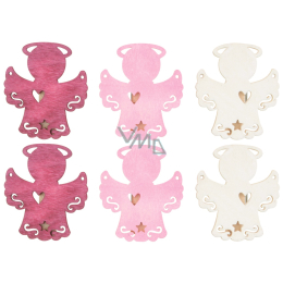 Opis Anděl dřevěný na kolíčku červeno-růžovo-béžový 4 cm 6 kusů