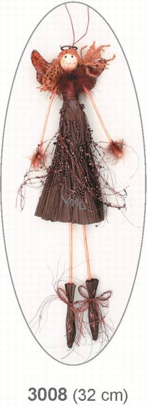 Anděl s perličkami hnědý 32 cm.