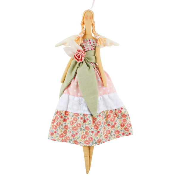 Andělka látková růžová se zelenkavou mašlí 47 cm