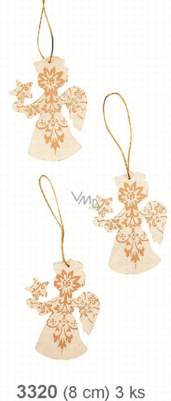 Dřevění andílci k zavěšení na platíčku krémový 3ks, 8cm