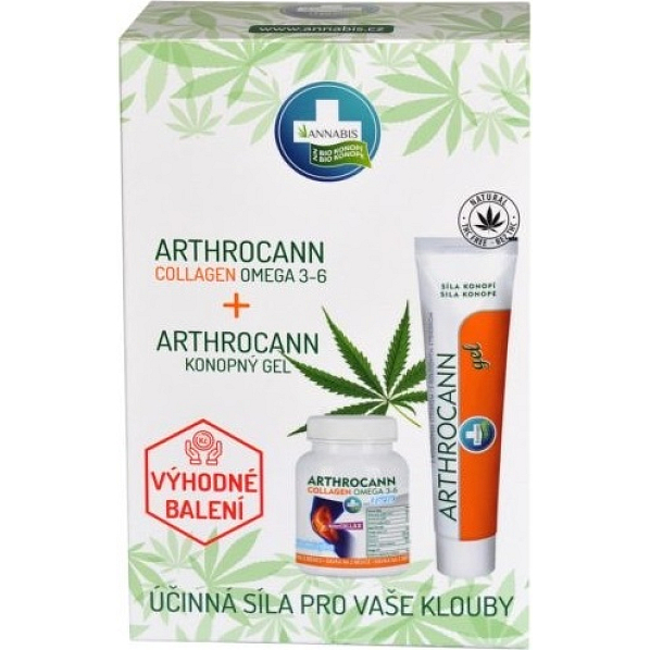 Opis produktu Annabis Arthrocann Collagen Omega 3-6 Forte doplněk stravy 60 tablet + Annabis Arthrocann konopný gel s koloidním stříbrem na klouby, šlachy svaly a záda 75 ml, dárková sada
