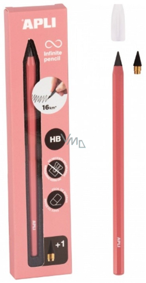 Nekonečné tužky Apli vám umožní psát nonstop. Inovativní tužka Infinite vám díky své jemně abrazivní a odolné tužce umožní psát až 16 km bez nutnosti ostření a poskytne vám tak optimální koncentraci při psaní a kreslení.