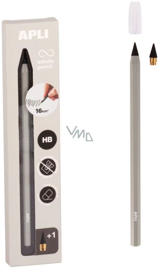 Nekonečné tužky Apli vám umožní psát nonstop. Inovativní tužka Infinite vám díky své jemně abrazivní a odolné tužce umožní psát až 16 km bez nutnosti ostření a poskytne vám tak optimální koncentraci při psaní a kreslení.