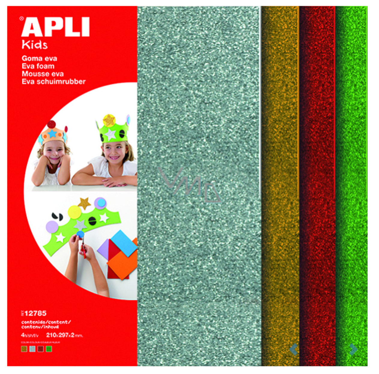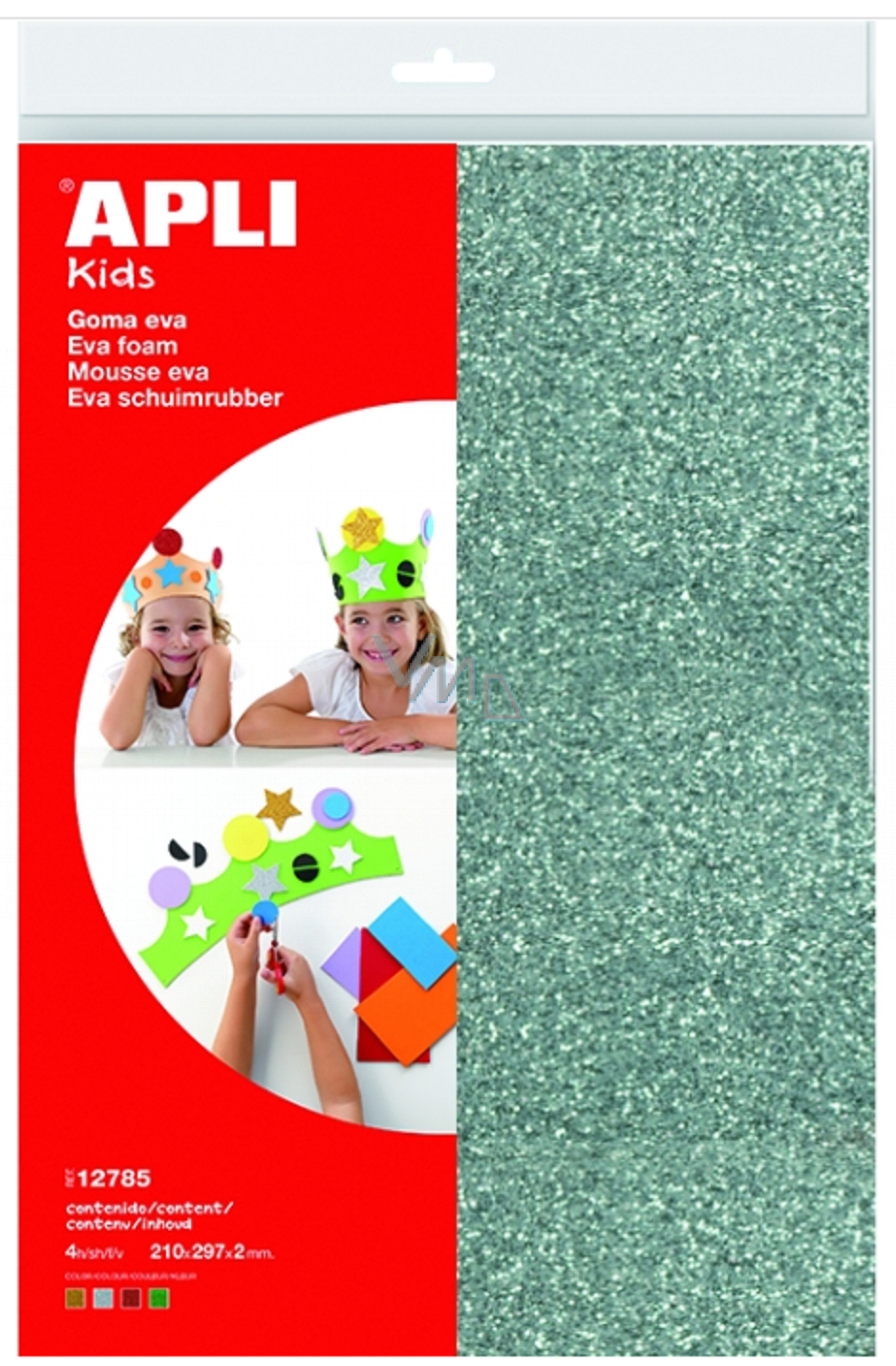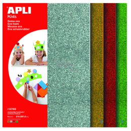 Pěnovka z powierzchnią pokrytą metalicznymi třpytkami w 4 kolorach. Idealny materiał do tworzenia dekoracji, działań artystycznych i pedagogicznych. Pěnovku można ciąć, kleić lub z niej wycinać drobne kształty dziurkaczami. Dzięki swojej mocnej strukturze pěnovka APLI nadaje się do formowania. Jest miękka, bez ostrych krawędzi i odporna (odpowiednia również do dekoracji na zewnątrz). Zdrowotnie nieszkodliwa, odpowiednia dla dzieci od 3 roku życia. Rozmiar arkusza: 210 x 297 x 2 mm. Opakowanie: 4 szt./ 4 kolory.