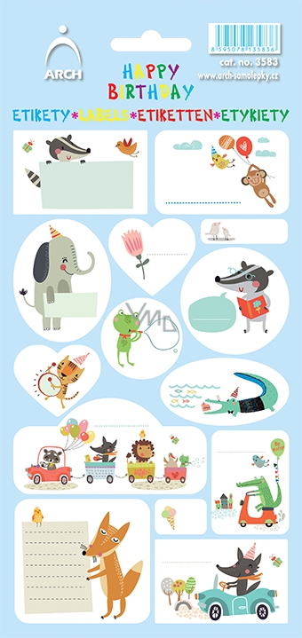 Arkus Samolepki do domu, na prezenty Happy Birthday niebieskie 14 etykiet