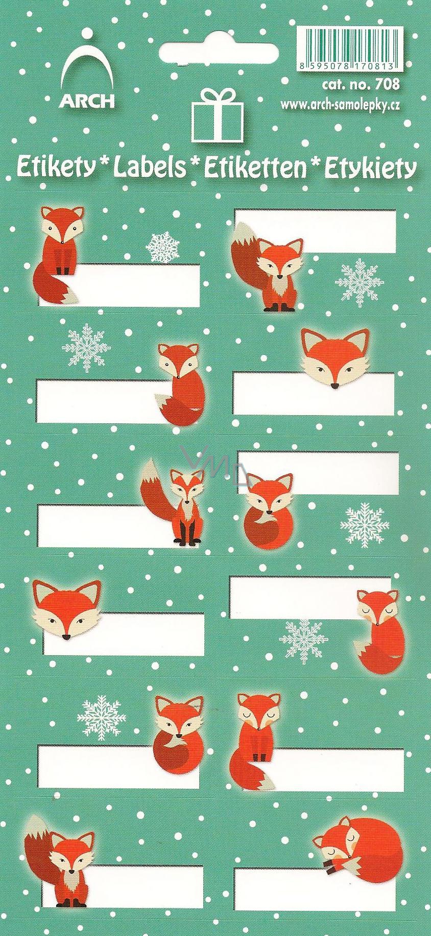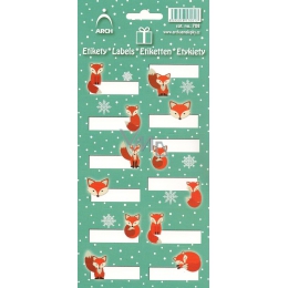 Arch Vánoční etikety samolepky Lišky zelený arch 12 etiket