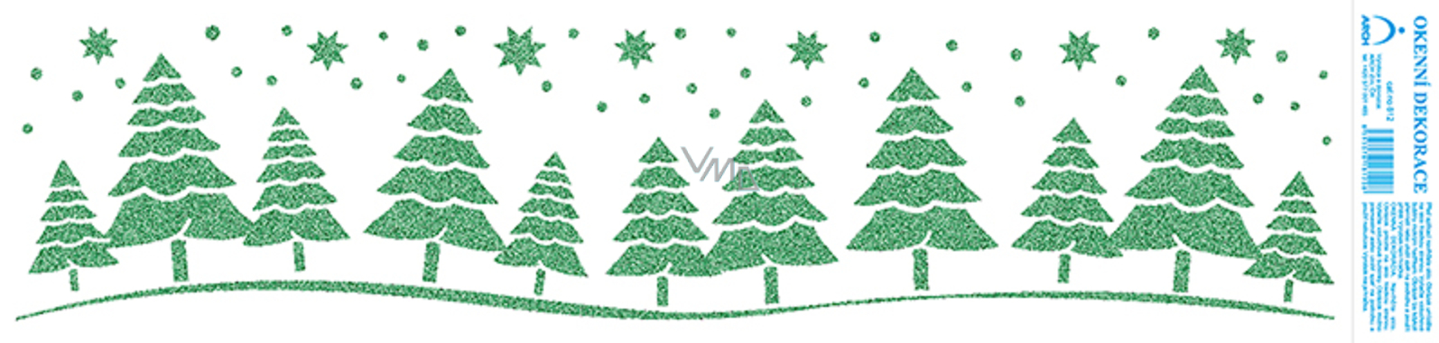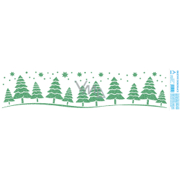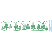Samoprzylepna naklejka na okno, folia bez kleju Zielone choinki z brokatem 50 x 12 cm