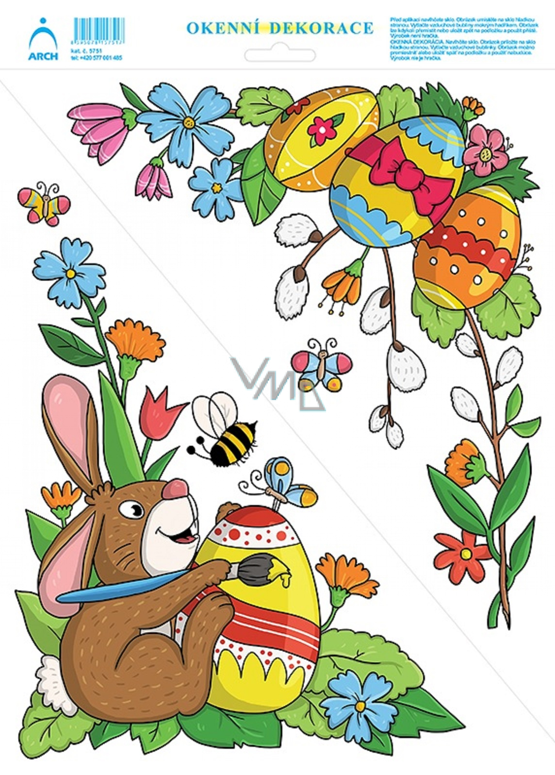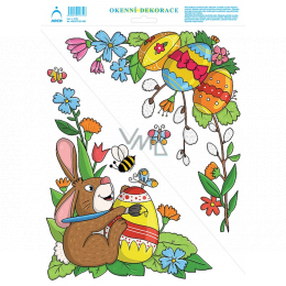 Arch Velikonoční samolepka, okenní fólie bez lepidla rohová Zajíček a vajíčka 33 x 24 cm