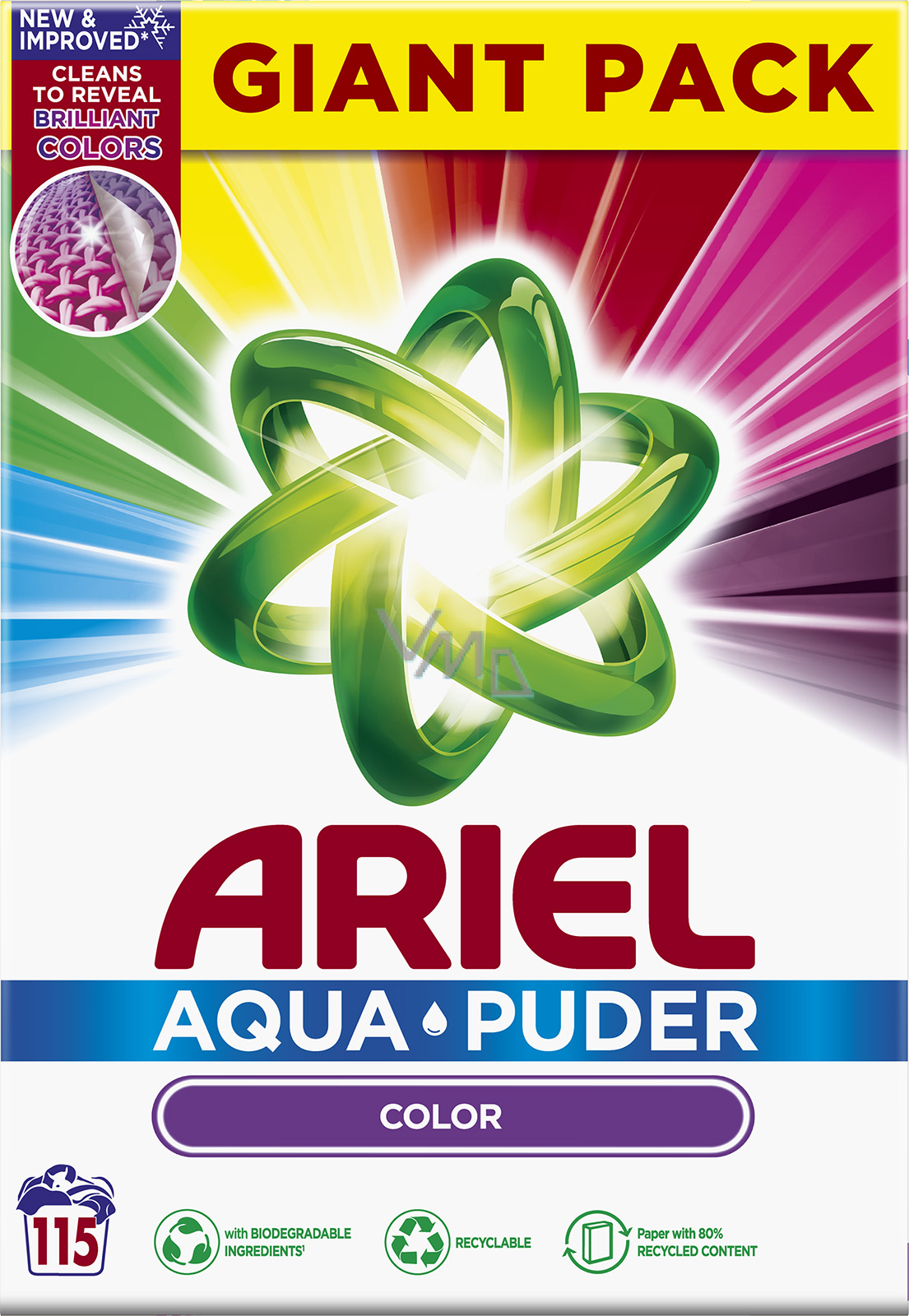 Hledáte prací prášek, který spolehlivě vypere a osvěží vaše prádlo? Tento prací prášek se bude hodit na barevné prádlo. Co se materiálu prádla týče, je ARIEL Color navržený jako univerzální prostředek. Zvládne tedy i jemné a sportovní prádlo. Prádlo nemusíte předem namáčet, prášek odstraní skvrny během praní. Prací prášek ARIEL je navržený pro běžnou údržbu. Zvláštní důraz klade na zachování intenzity barvy vašeho prádla. Prací prášek ARIEL byl vyroben v Česku.