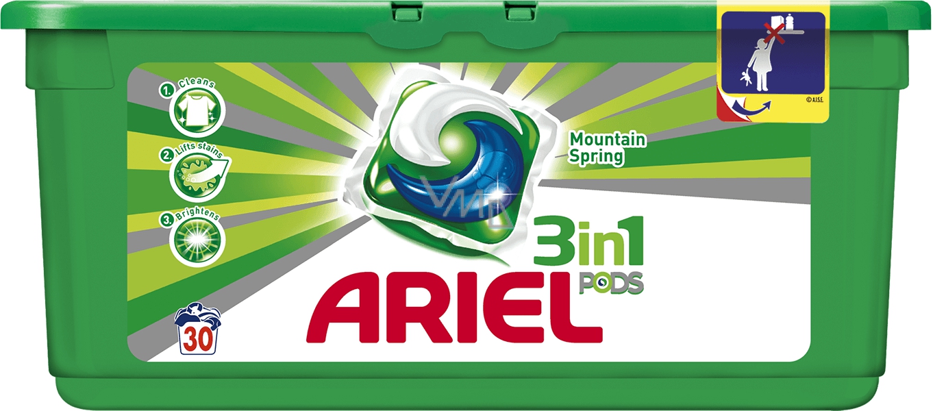 Ariel Mountain Spring gelové kapsle na praní pro krásně čisté a voňavé prádlo bez skvrn 30 kusů 897 g