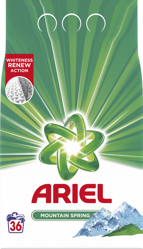 Opis Ariel Mountain Spring prací prášek pro čisté a voňavé prádlo bez skvrn 36 dávek 2,7 kg