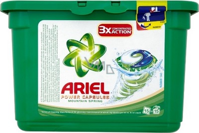 Gelové kapsle Ariel Power kombinují nové technologie a poskytují pohodlí a účinnost, které od malé a výkonné technologie očekáváte. Jedinečný více-komorový design udržuje složky stabilní a oddělené až do zahájení pracího procesu. Poskytují 3x koncentrovaný účinek praní: praní, odstraňování skvrn a rozjasňování praného prádla v koncentrované formě.
