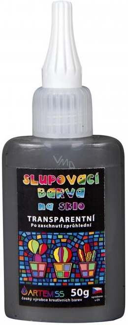Slupovací barva - po zaschnutí transparentní. Vodou ředitelná barva na většinu hladkých povrchů (např. sklo - okno, zrcadlo, dlaždice, ledničku aj.) Slupovací barva je zdravotně nezávadná, voděodolná a bez zápachu.