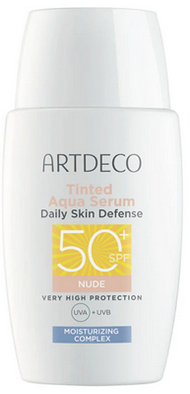 ARTDECO Tinted Aqua Serum Daily Skin Defense SPF 50+ to lekko tonujące serum nawilżające, które łączy wysoką ochronę, pielęgnację skóry i naturalne ujednolicenie kolorytu w jednym kroku. Idealne do codziennego użytku, gdy skóra potrzebuje lekkości, nawilżenia i niezawodnej ochrony. Lekka tekstura szybko się wchłania, pozostawiając naturalne, promienne wykończenie bez uczucia obciążenia. Delikatne tonowanie łatwo dostosowuje się do skóry i pomaga osiągnąć jednolity, świeży wygląd.