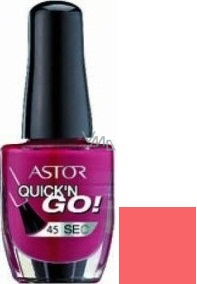 A protože ASTOR zná vaši vášeň pro barvy, čítá paleta odstínů laků QUICK ´N GO 20 úchvatných barev. Takže si můžete vybrat tu, která bude odpovídat vaší náladě. Všechny jsou nádherně lesklé, odolné proti olupování a blednutí.