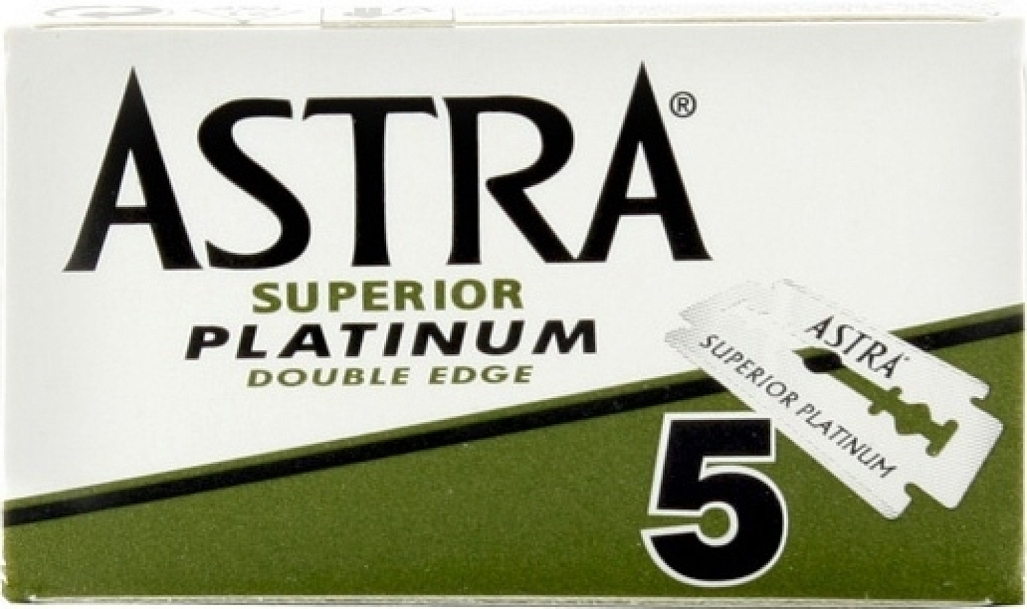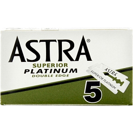 Poszczególne pakowane żyletki Astra Superior Platinum są zapakowane w twarde papierowe pudełko i ułożone po pięć sztuk, z którego łatwo i wygodnie można wyjmować poszczególne żyletki.