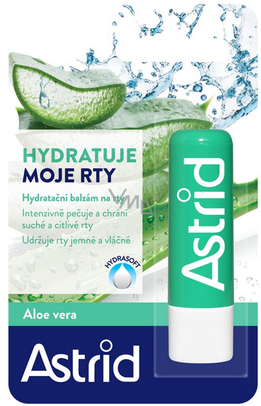 Astrid balzám na rty, založené na efektivní kombinaci účinných přírodních látek, poskytují rtům dokonalou péči, pomáhají je chránit a obnovovat a zanechávají je jemné a vláčné. Užijte si krásné a zdravé vypadající rty po celý den! Hydratační balzám na rty obohacený o aloe vera, která má jedinečné zvláčňující vlastnosti, pomáhá poskytnout suchým a citlivým rtům ochranu a dlouhotrvající hydrataci. Obsažený vitamin E je známý svými významnými antioxidačnímu a zvláčňujícími vlastnostmi. Přídavek UV filtrů pomáhá zajistit ochranu rtů před slunečním zářením. Složení vylepšené o Hydrasoft, aktivní hydratační komplex obsahující přírodní oleje a vosky, pomáhá chránit rty před vysoušením a zároveň je udržuje jemné a vláčné.