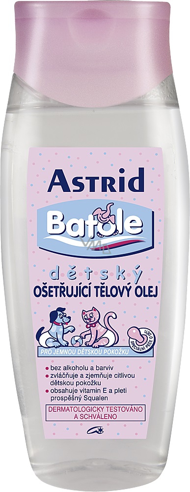 Je vhodný ke každodennímu ošetření a ochraně citlivé dětské pokožky, zvláště po koupeli. Obsažené účinné látky – Squalen, získávaný z olivového oleje, a vitamín E pokožku zvláčňují, zjemňují, napomáhají její regeneraci a chrání ji po dlouhou dobu před vysoušením. Dermatologicky testováno.