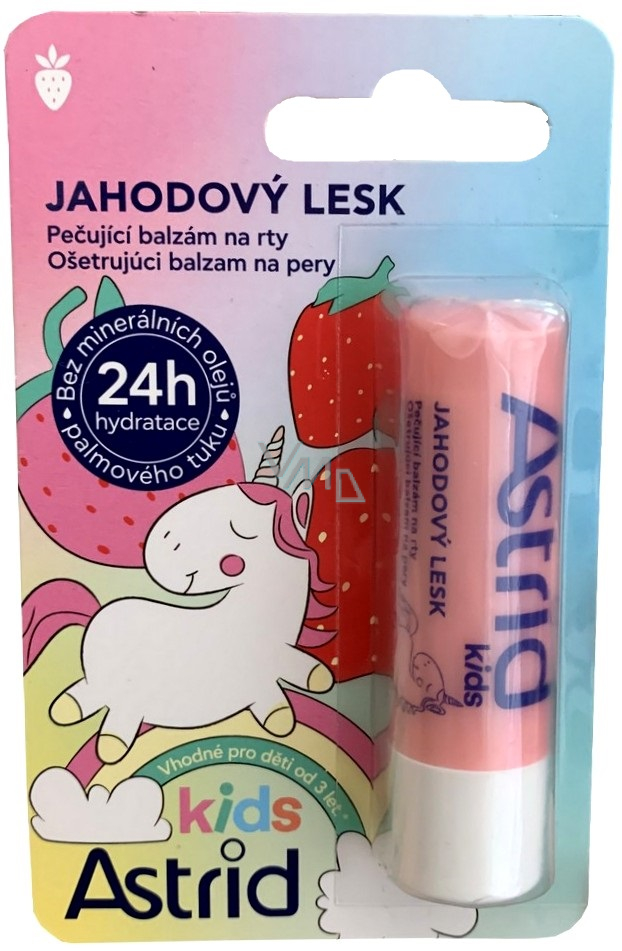 Balsam do ust Astrid, oparty na efektywnej kombinacji skutecznych substancji naturalnych, zapewnia ustom doskonałą pielęgnację, pomaga je chronić i regenerować, pozostawiając je gładkie i miękkie. Ciesz się pięknymi i zdrowo wyglądającymi ustami przez cały dzień! Pielęgnujący balsam do ust został specjalnie opracowany dla delikatnych dziecięcych ust. Hipoalergiczne składniki wzbogacone bisabololem, znanym ze swoich wyraźnych właściwości kojących, skutecznie nawilżają i pomagają chronić wrażliwe usta. Zawarty witamina E ma znaczące właściwości antyoksydacyjne i nawilżające. Dodatek filtrów UV pomaga zapewnić ochronę ust przed promieniowaniem słonecznym. Z delikatnym smakiem truskawkowym dla naszych najmniejszych. Skład wzbogacony o Hydrasoft, aktywny kompleks nawilżający zawierający naturalne oleje i woski, pomaga chronić usta przed wysychaniem, jednocześnie utrzymując je gładkie i miękkie.