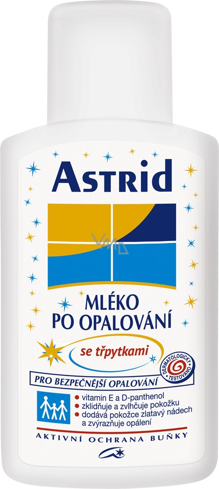 Jemná, lehce roztíratelná emulze určená k péči o pokožku po opalování. Snižuje citlivost a napětí pokožky a zároveň jí dodává potřebnou vlhkost. Vitamin E a D-panthenol podporují přirozenou regeneraci pleti. Obsažené jemné třpytivé částečky pokožku rozjasní a prozáří, dodají jí zlatavý nádech a zvýrazní opálení. Dermatologicky testováno.