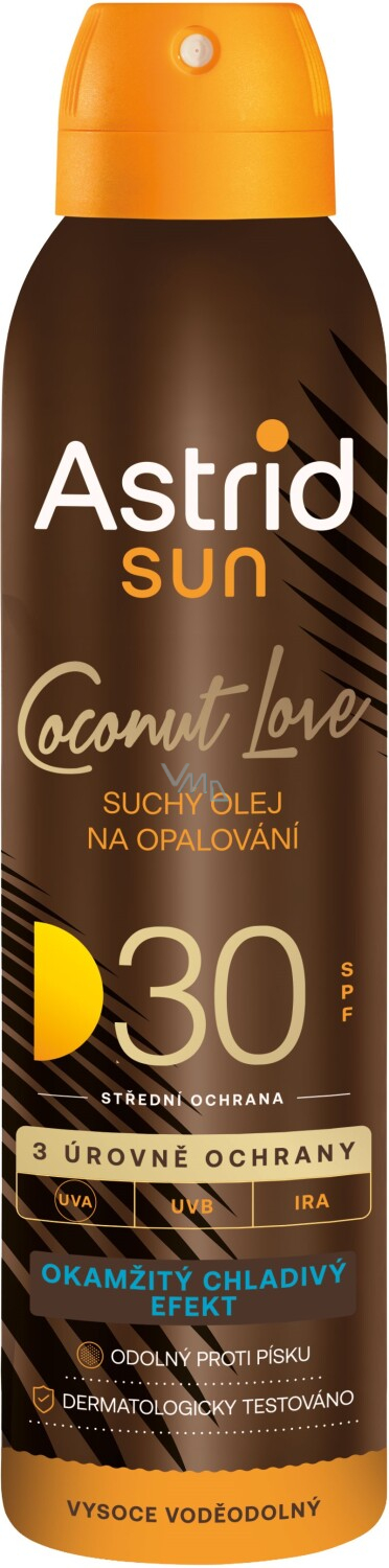 Astrid Sun Coconut Love jest suchym olejem do opalania z faktorem ochrony OF30, który chroni skórę przed szkodliwym promieniowaniem UV. Lekka, szybko wchłaniająca się formuła o słodkim zapachu kokosa pozostawia skórę miękką, nawilżoną i naturalnie opaloną. Olej jest idealny do bezpiecznego opalania i jednocześnie wspiera równomierne opalenie.