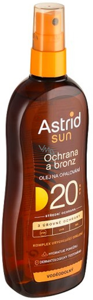 ASTRID SUN olej do opalania w sprayu OF 20 z innowacyjną technologią przeciwsłoneczną (UVA/UVB/IR) zapewnia skórze szerokie spektrum fotostabilnej ochrony przed szkodliwym działaniem promieni UV i promieniowania podczerwonego.