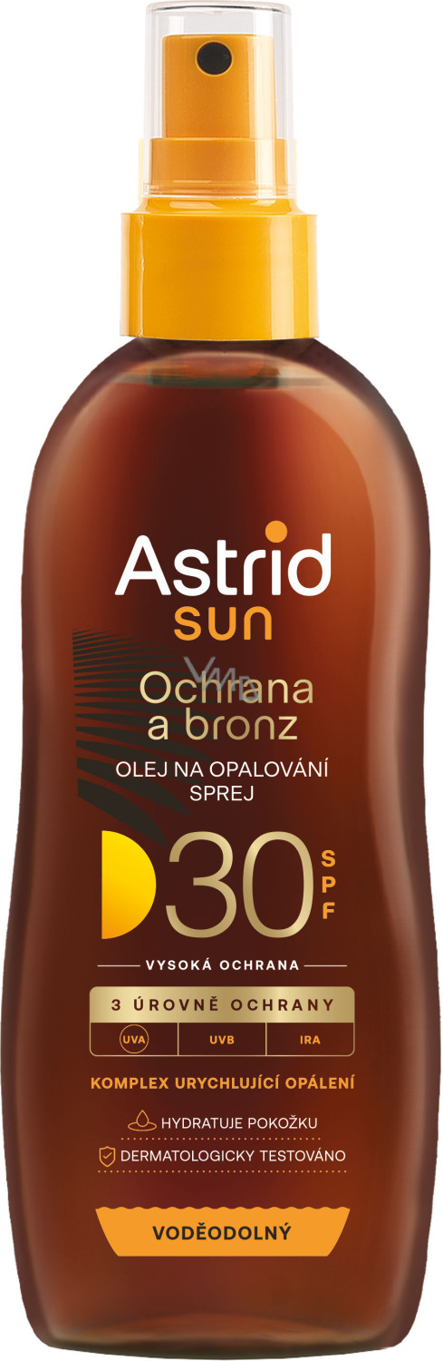 Astrid Sun olej do opalania w sprayu z faktorem ochrony SPF 30 zapewnia wysoką ochronę przed szkodliwym promieniowaniem UVA i UVB, a jednocześnie dba o skórę. Dzięki zawartości naturalnych olejów pomaga osiągnąć piękną, równomierną opaleniznę i utrzymuje skórę nawilżoną. Odpowiedni dla skóry normalnej i wrażliwej.