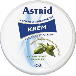 Astrid výživný a regenerační krém. Je ideální pro komplexní péči o pleť a její ochranu před nepříznivými vlivy prostředí. Jojobový olej je vhodný pro každý typ pleti, hydratuje ji a vyživuje. Vitamín E, D-Panthenol a allantoin udržují pleť svěží a napomáhají její regeneraci a zklidnění.