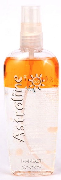 Astroline Solar Duo - univerzální moderní dvoufázový tělový sprej se zesilovačem k opalování v soláriích. Duo systém zabezpečuje maximální péči o pokožku. Hydratuje, chrání, regeneruje, vyživuje a promastí bez použití dráždivých emulgátorů. Elegantně, moderně. Deriváty Tyrosinu se vstřebají a vlivem UV záření přemění v pokožce na tělu vlastní kožní barvivo. Tím je opálení výrazně zesíleno a zefektivněno.
